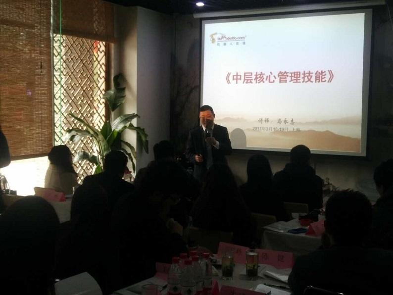 2017年3月18-19日,中國機器人行業(yè)的領(lǐng)先門戶——機器人在線公司針對公司的中高層管理者組織了一次管理課程短期培訓(xùn)班——中層管理者的核心技能,影響力集團金牌講師馬永志老師為30多名中高層主管做了精彩的培訓(xùn)。培訓(xùn)中馬老師深入淺出地講解了1.中高層管理者角色定位認(rèn)知。2.卓越管理者組織溝通與會議管理。3.目標(biāo)管理的步驟與方法。4.團隊成員的選用育留策略等并結(jié)合具體案例講解團隊成員的輔導(dǎo)與激勵念……深入淺出、娓娓道來,在學(xué)員中間產(chǎn)生了廣泛的共鳴,贏得了在場全體學(xué)員熱烈的掌聲。